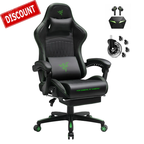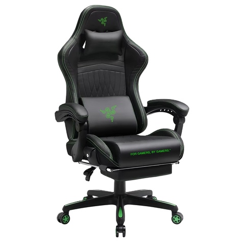 เก้าอี้เล่นเกม Razer สีเขียวสีดำเก้าอี้นวดหนัง PU รุ่นแข่งรถเก้าอี้เล่นเกมมีที่วางเท้า